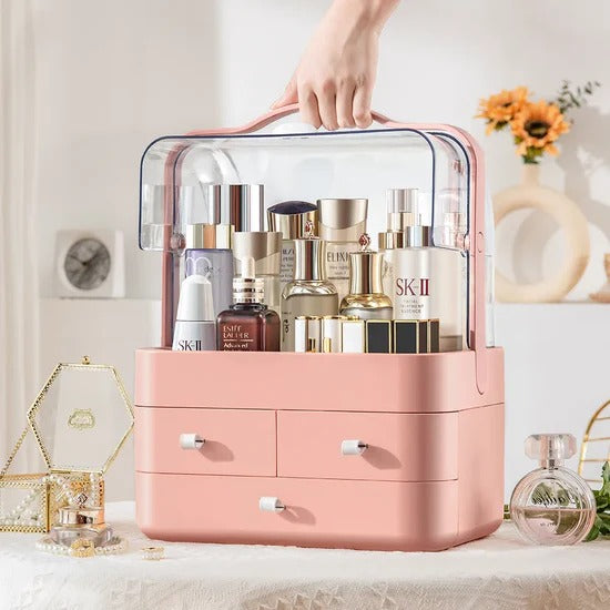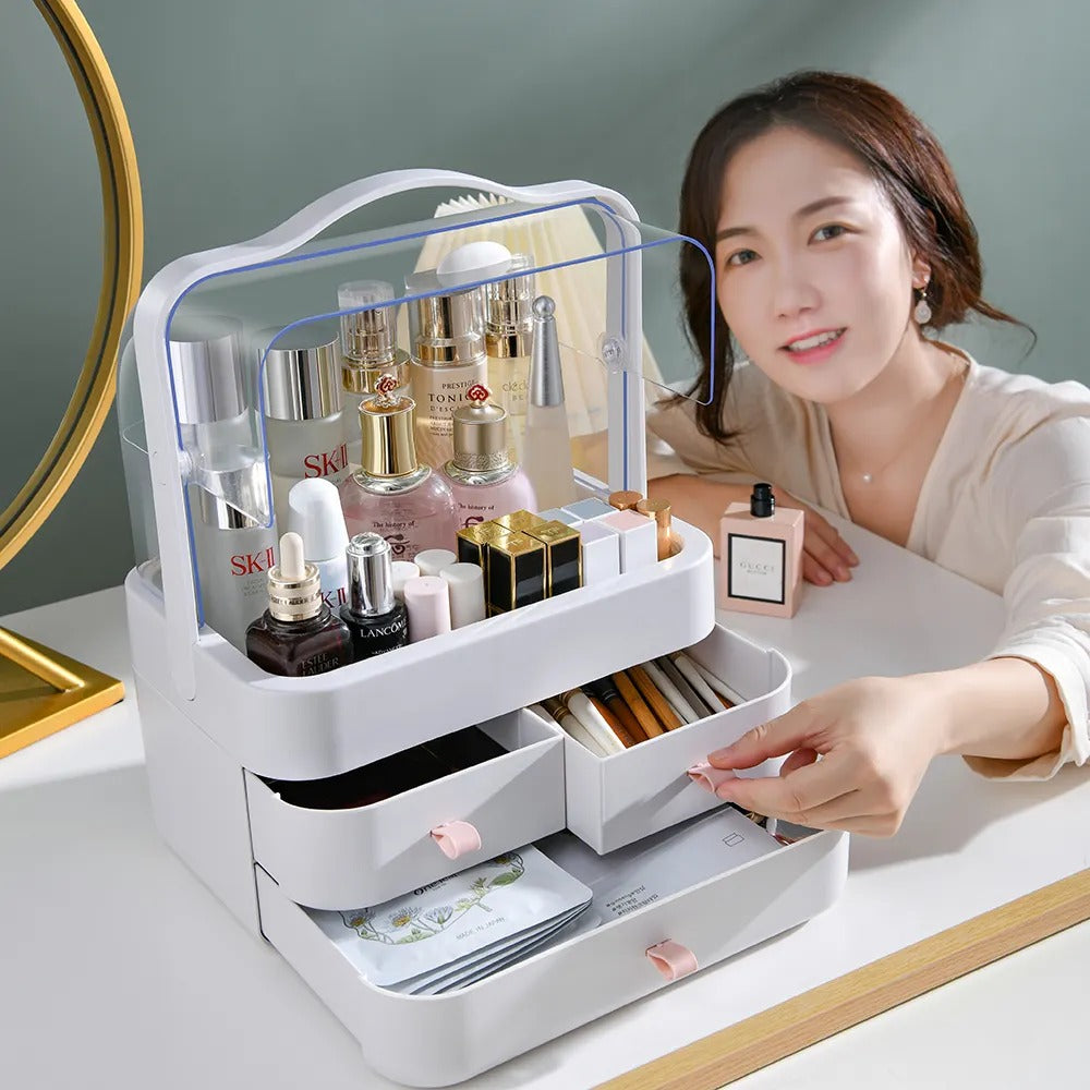 Acrylic Double Door Cosmetic Organizer with Drawers